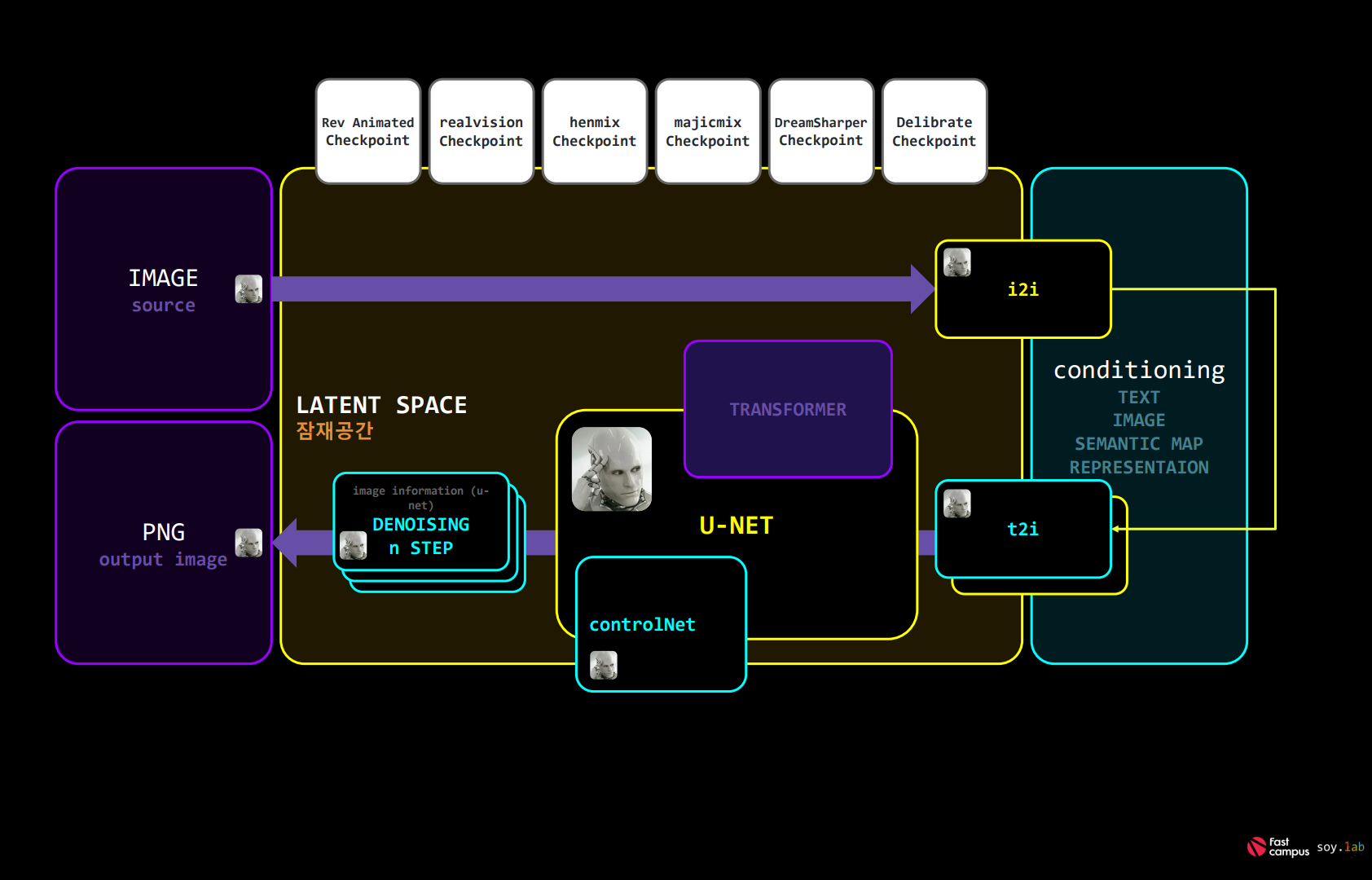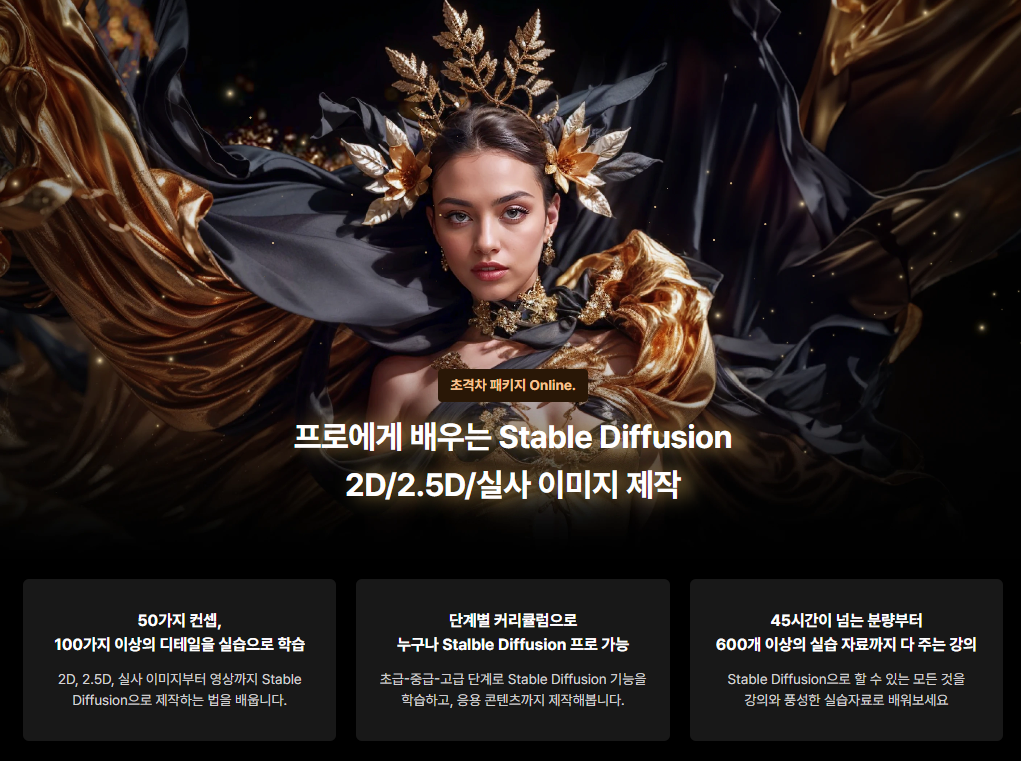 - 강의 개요 : Stable Diffusion을 활용한 2D, 2.5D, 실사 이미지 생성과 관련된 전반적인 방법과 도구들을 총제적으로 학습할 수 있습니다.